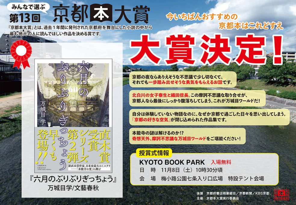 第13回 みんなで選ぶ 京都本大賞 大賞決定しました!